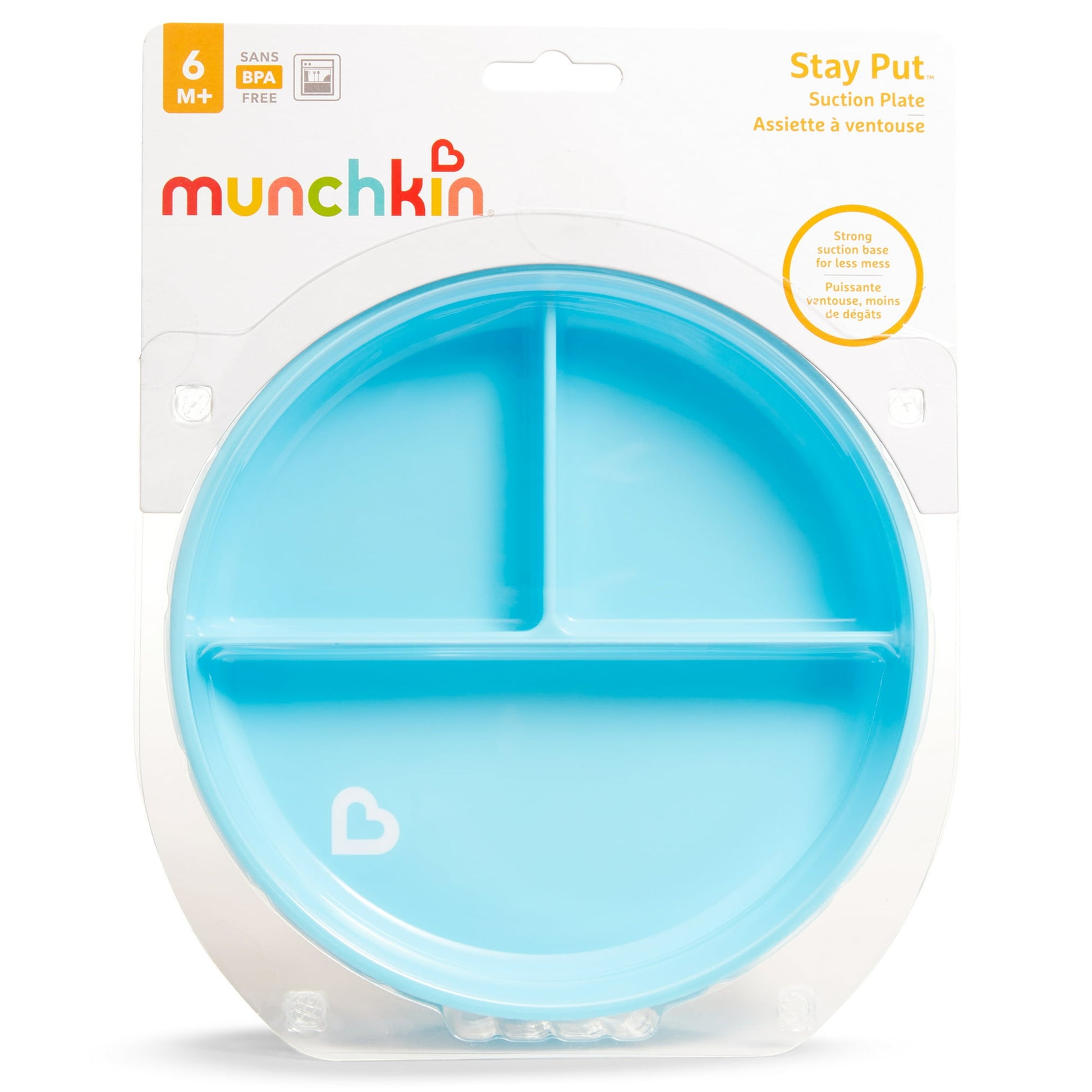 (3 pack) Munchkin Stay Put Divided Section Suction Plate, Blue, Unisex