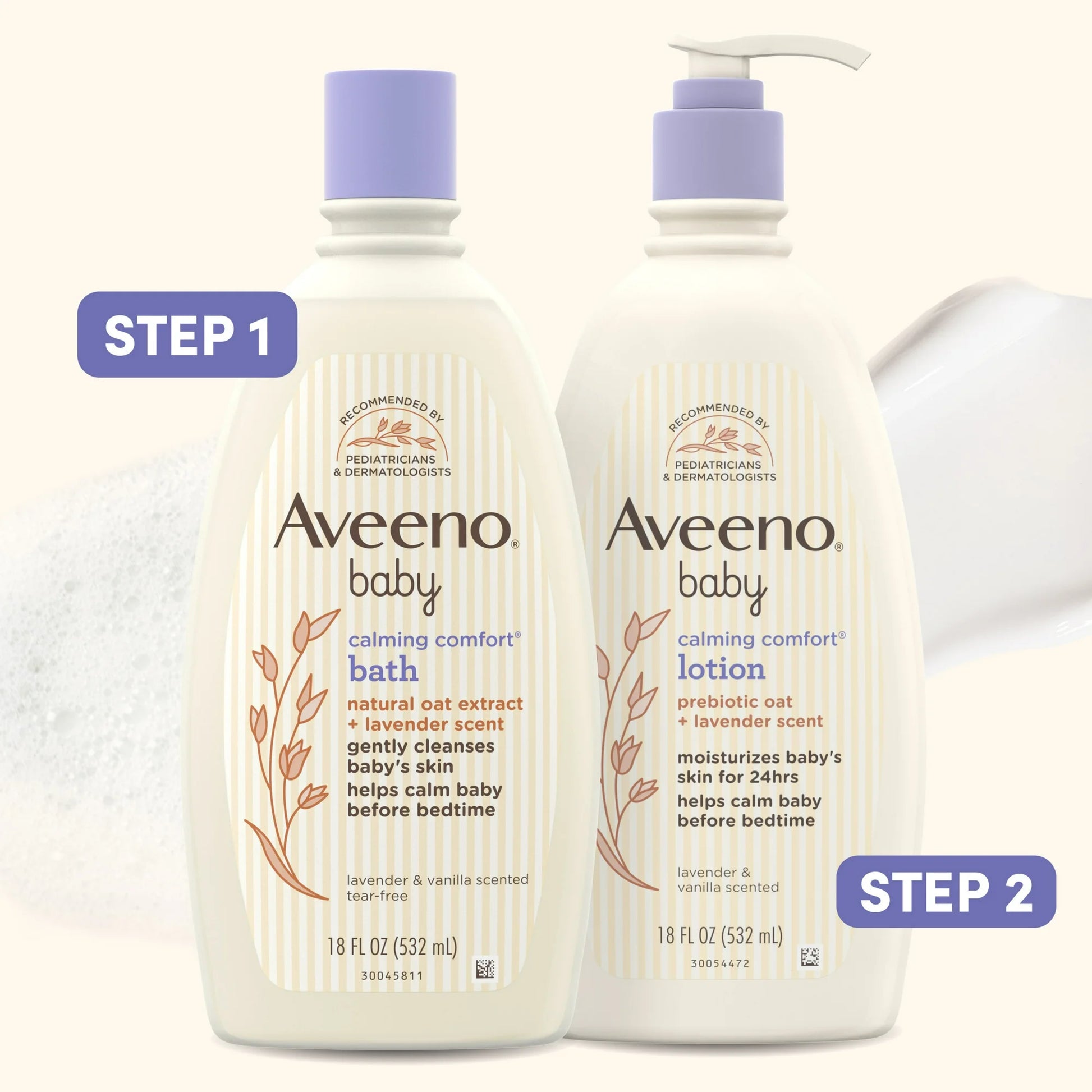 - Aveeno Baby Calming Comfort Moisturizing Bedtime Lotion with relaxing scents of lavender & vanilla