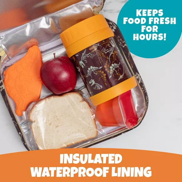- PERFECTLY SIZED REUSABLE DINOSAUR LUNCHBOX: Great for Back to School, this cute lunch bag features a clip on handle for easy carrying! The slim design allows for easy storage without the bulk measuring 10 x 8 x 3 inches fits Bentology Bento Box containers, and is compatible with most kid Bento Box brands (sold separately). Food Safe - No Lead, BPA, Phthalates, Suitable for Ages 3+. THIS LISTING IS FOR BAG ONLY, ALL OTHER ACCESSORIES SHOWN NOT INCLUDED.