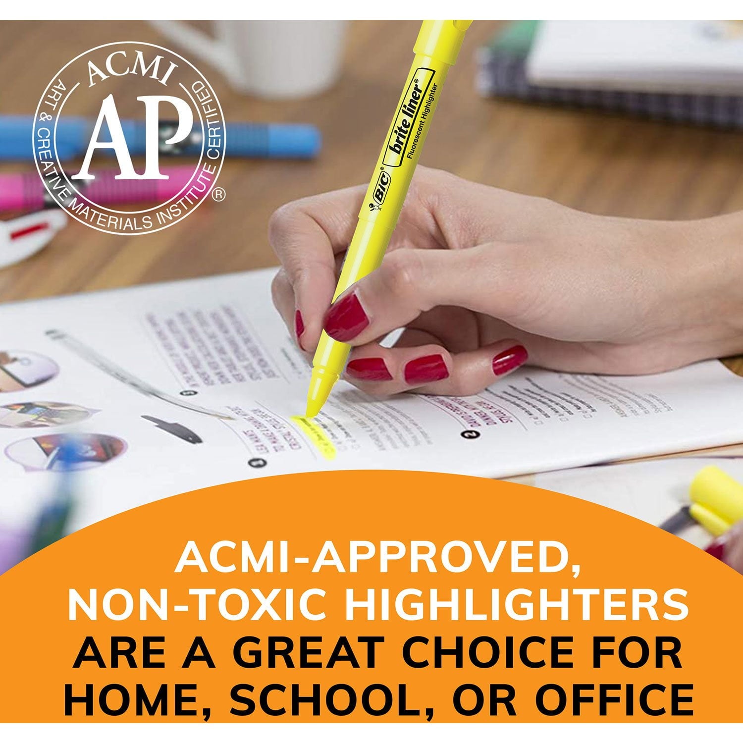 BIC Evolution wood-case pencils have graphite lead that is shock-resistant, easy to sharpen, and offers excellent erasability. BIC Fineliner marker pens add colorful flair and detail to your compositions that are perfect for doodling, drafting, writing, and adult coloring. ACMI-approved BIC Brite-Liner highlighters are a perfect addition to your art, school, or office supplies, with long-lasting color that writes up to eight hours without drying out even with the cap left off.