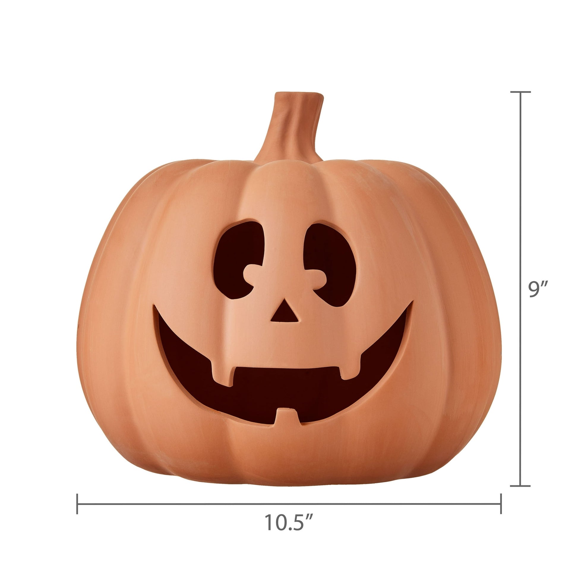 Clay Jack-o-Lantern Tabletop Fall Halloween Decor, Brown, by Way To Celebrate
