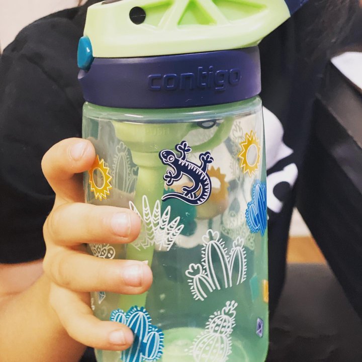 Kids enjoy an easy one-handed drinking experience at the push of a button
