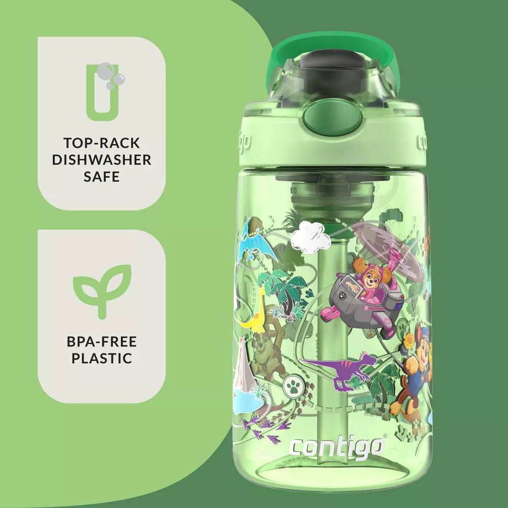 Contigo 14oz Plastic Paw Patrol Kids' Dino Treks Aubrey Cleanable Autospout Water Bottle Green