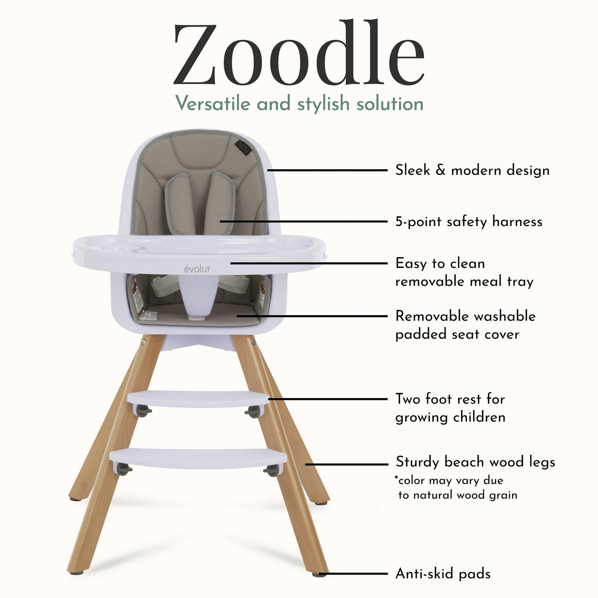 Evolur Zoodle 2-in-1 High Chair Booster Feeding Chair with Modern Design, Light Grey