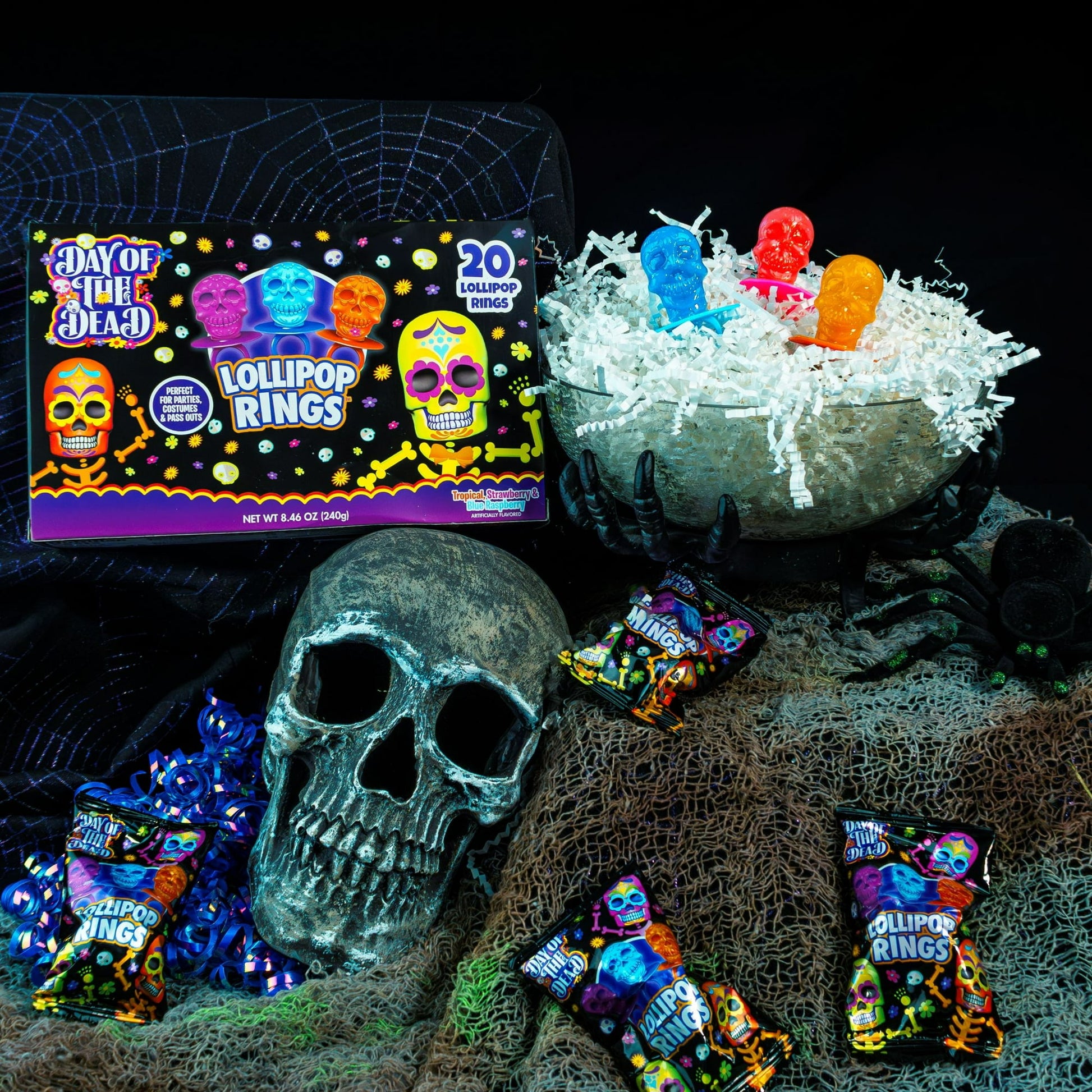 Flix Candy Halloween, Day of The Dead Lollipop Rings, Assorted Flavors, 20 Count Box