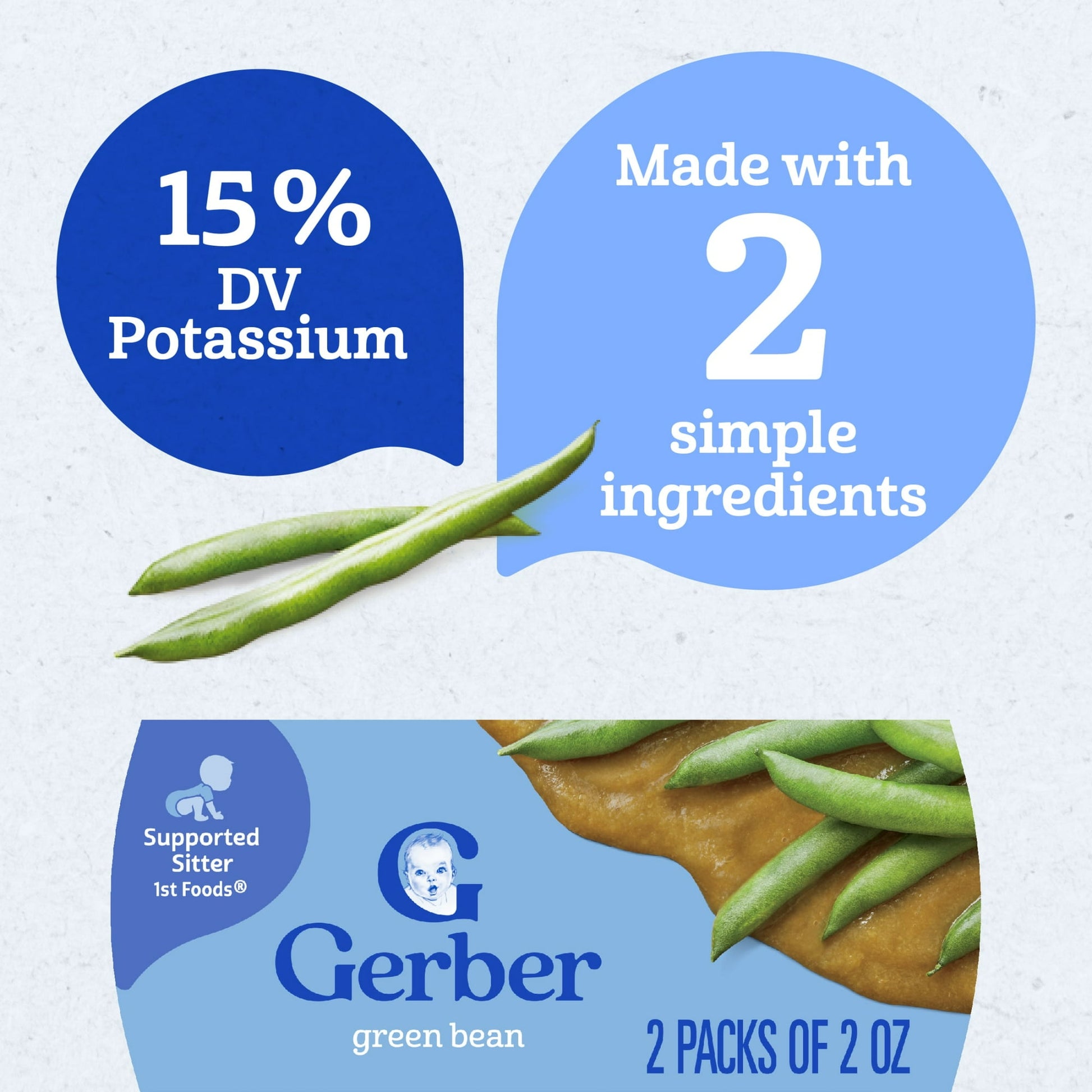 Gerber Stage 1 Baby Food, Green Bean, 2 oz Tubs (2 Pack)