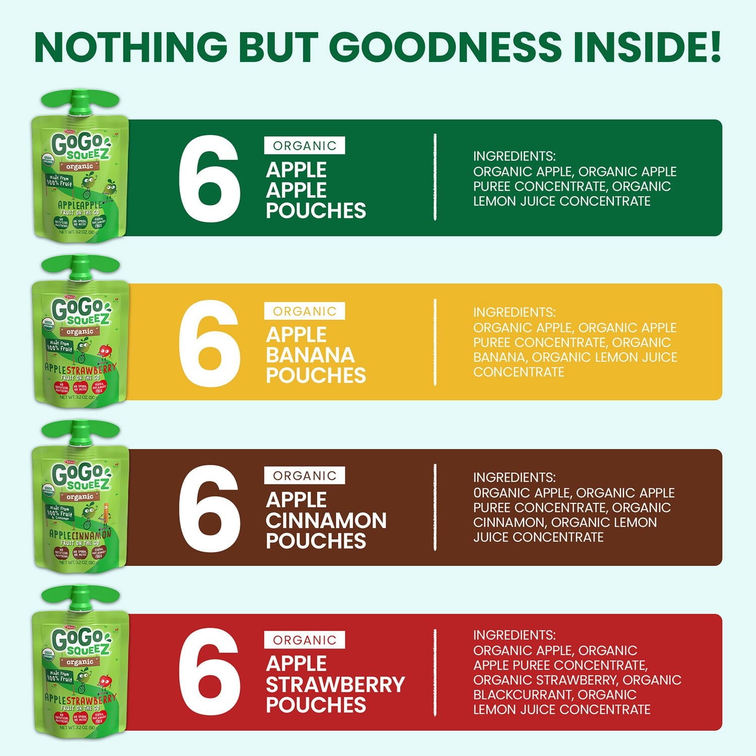 GoGo SqueeZ Organic Applesauce Pouches, Variety Pack, 3.2 oz., 24 ct.