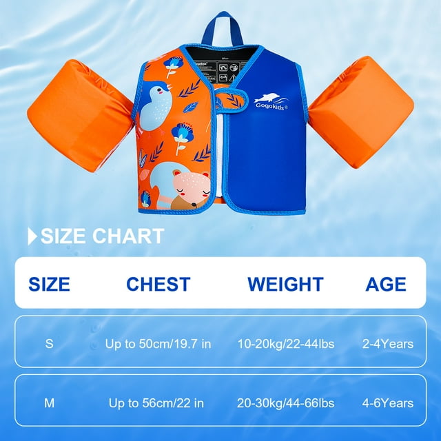 Gogokids Kids Swim Vest with Strong Buoyancy, Toddler Flotation Jackets with Armbands, Child Swimming Aid for 30-50 Pounds Girls and Boys (2-6 Years)