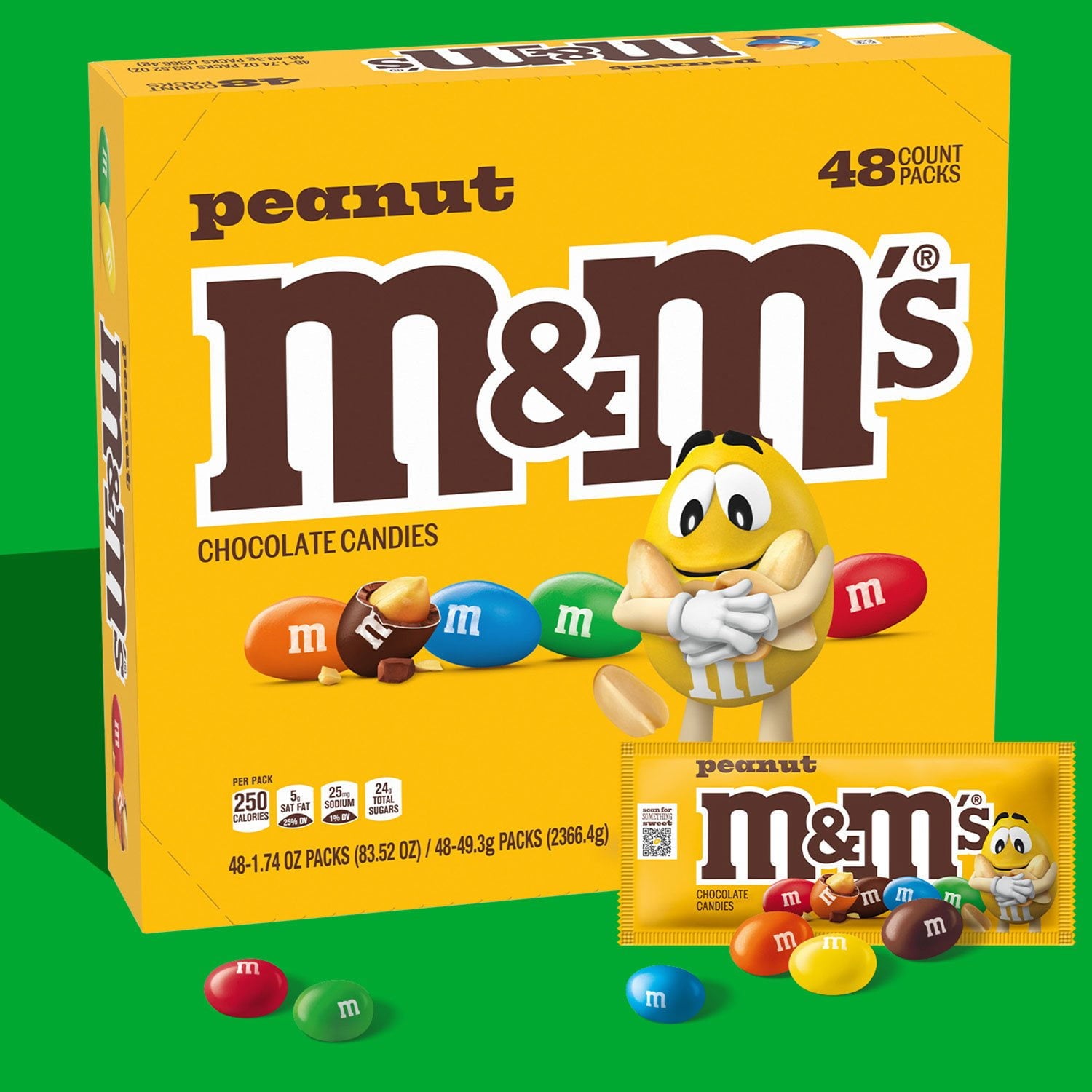 M&M'S Peanut Milk Chocolate Candy, Singles Size, 1.74 oz., 48 pk.