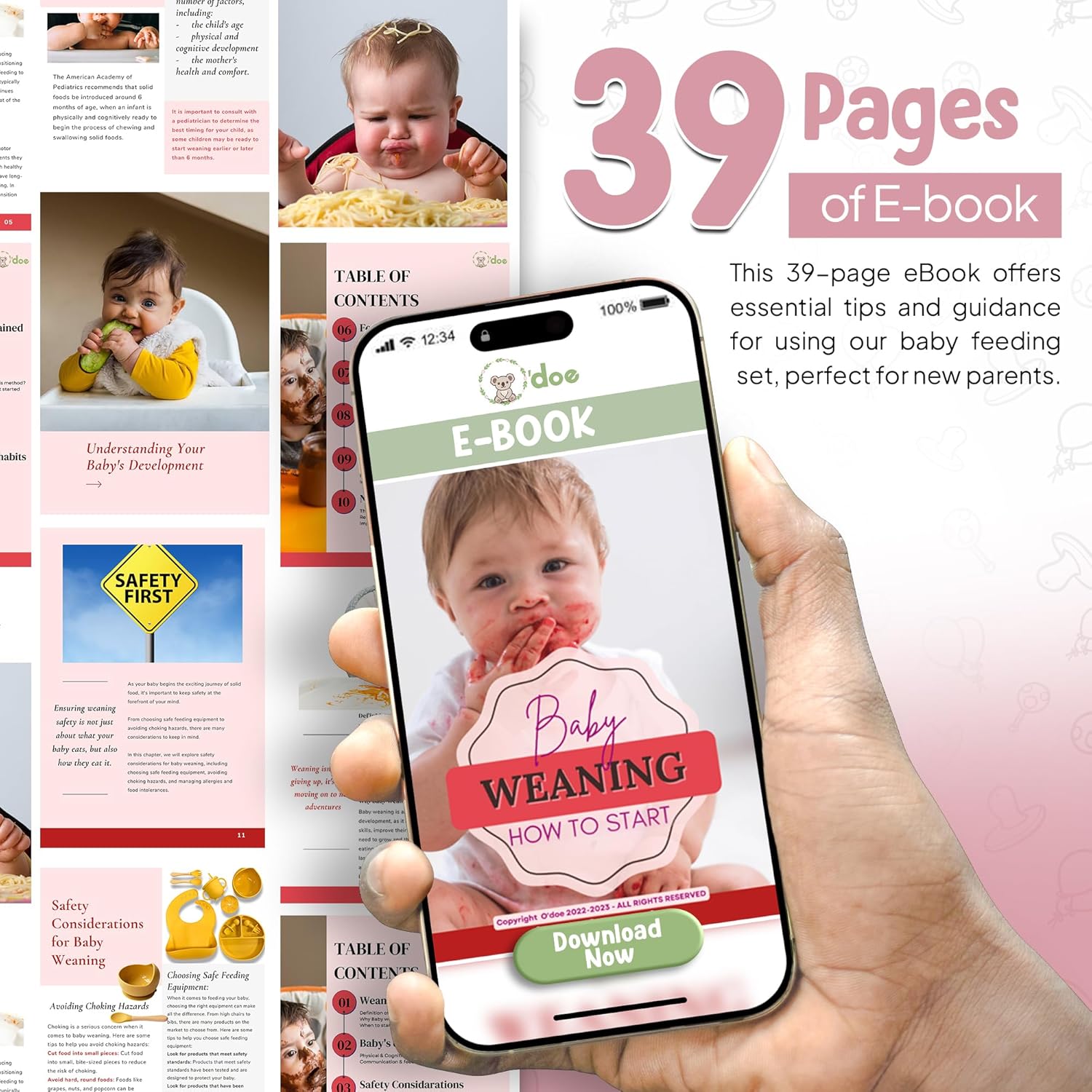 Material and Quality: Crafted from food-grade silicone, our feeding set is free from BPA, PVC, and phthalates. Durable and safe, it withstands daily use while maintaining its pristine condition.