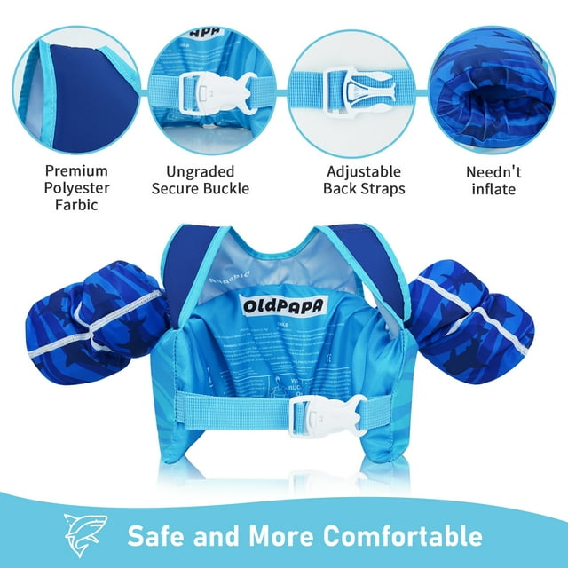Kids Swim Vest with Arm Wings, Straps and Buckles for Boys/Girls,22-60lbs / 2-9 Years,Shark