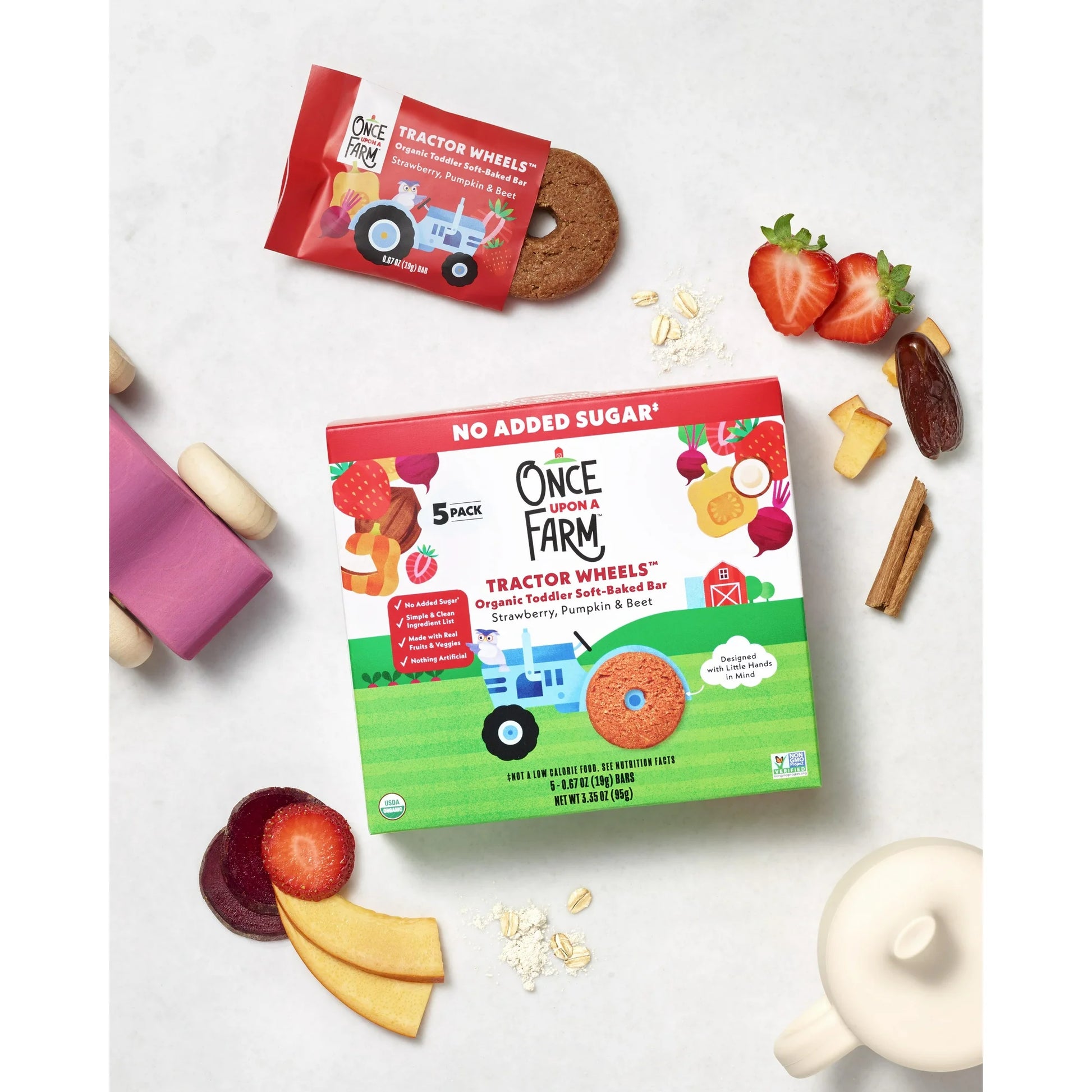 - Once Upon a Farm Organic Tractor Wheels Toddler Bar, Strawberry, Pumpkin & Beet, 5ct