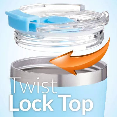 - TWIST-LOCK LID = LESS MESS: The Twist-Lock lid reduces spills since the lid won’t pop off when the cup is dropped. While drinking from the lid, the Flip-N-Lock lid closure stays out of the way by locking open. When the lid and the straw opening are closed the cup won’t leak.