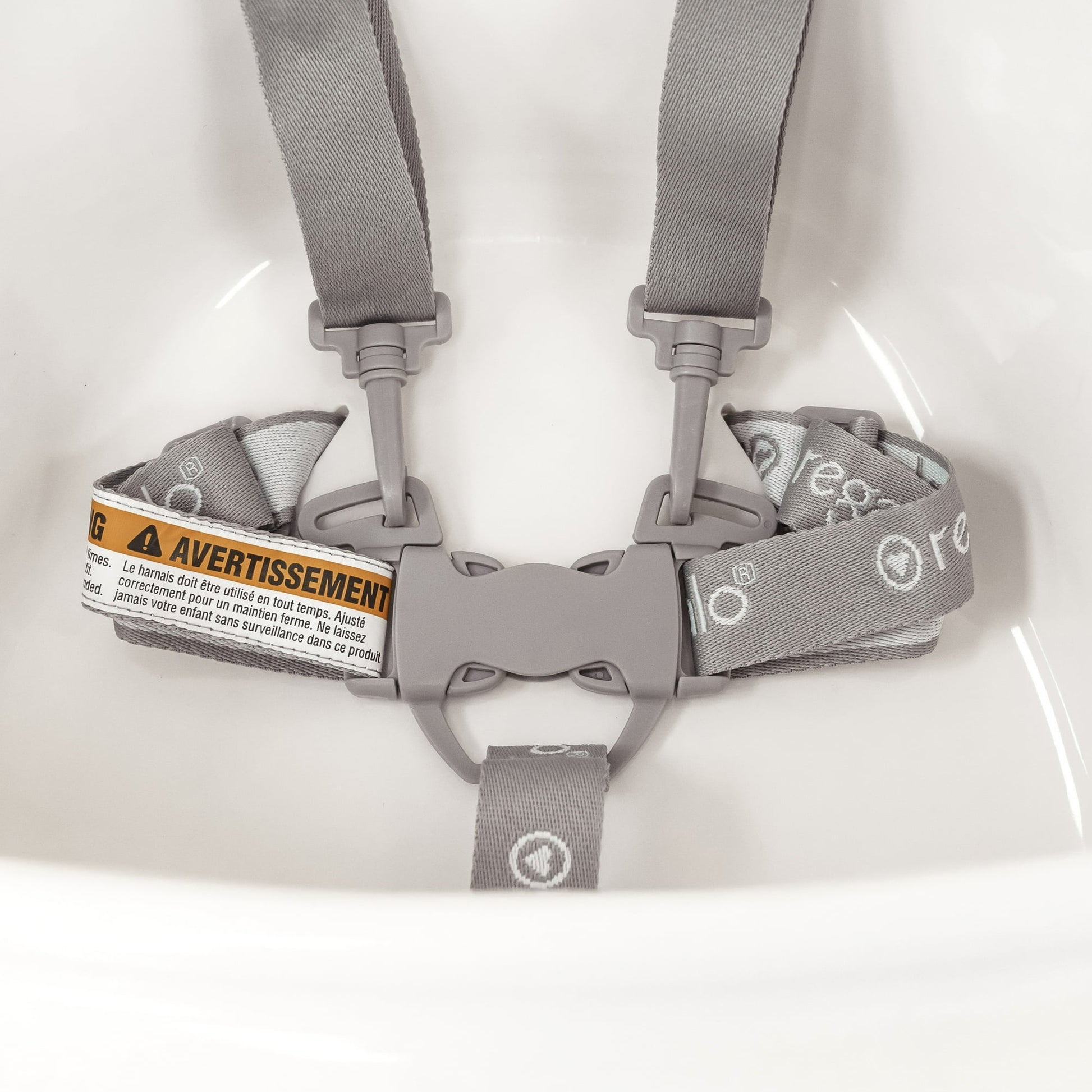 Regalo Baby Basics High Chair, Removable Oversized Tray with Cup Holder, 5-Point Harness, White, Plastic Chair, Steel Legs, Ages 6-36 Months