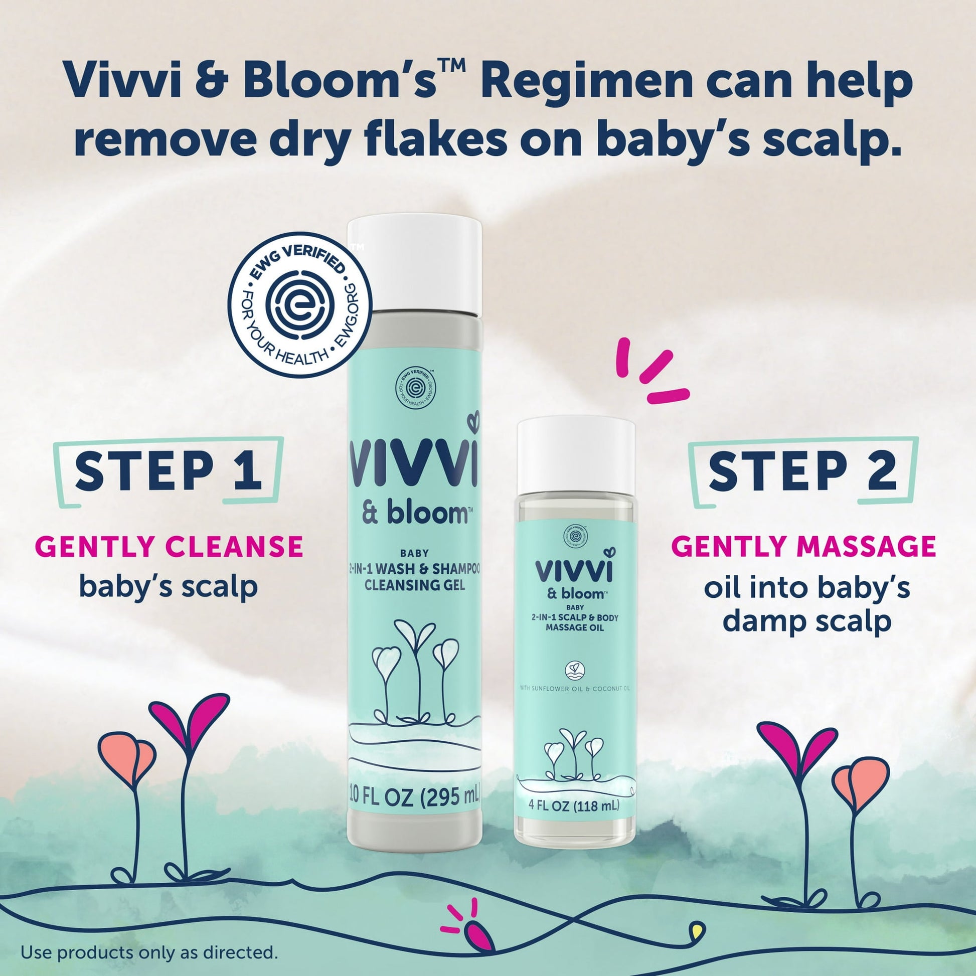 Vivvi & Bloom Gentle 2-in-1 Baby Scalp & Body Massage Oil for Cradle Cap Relief, 4 oz