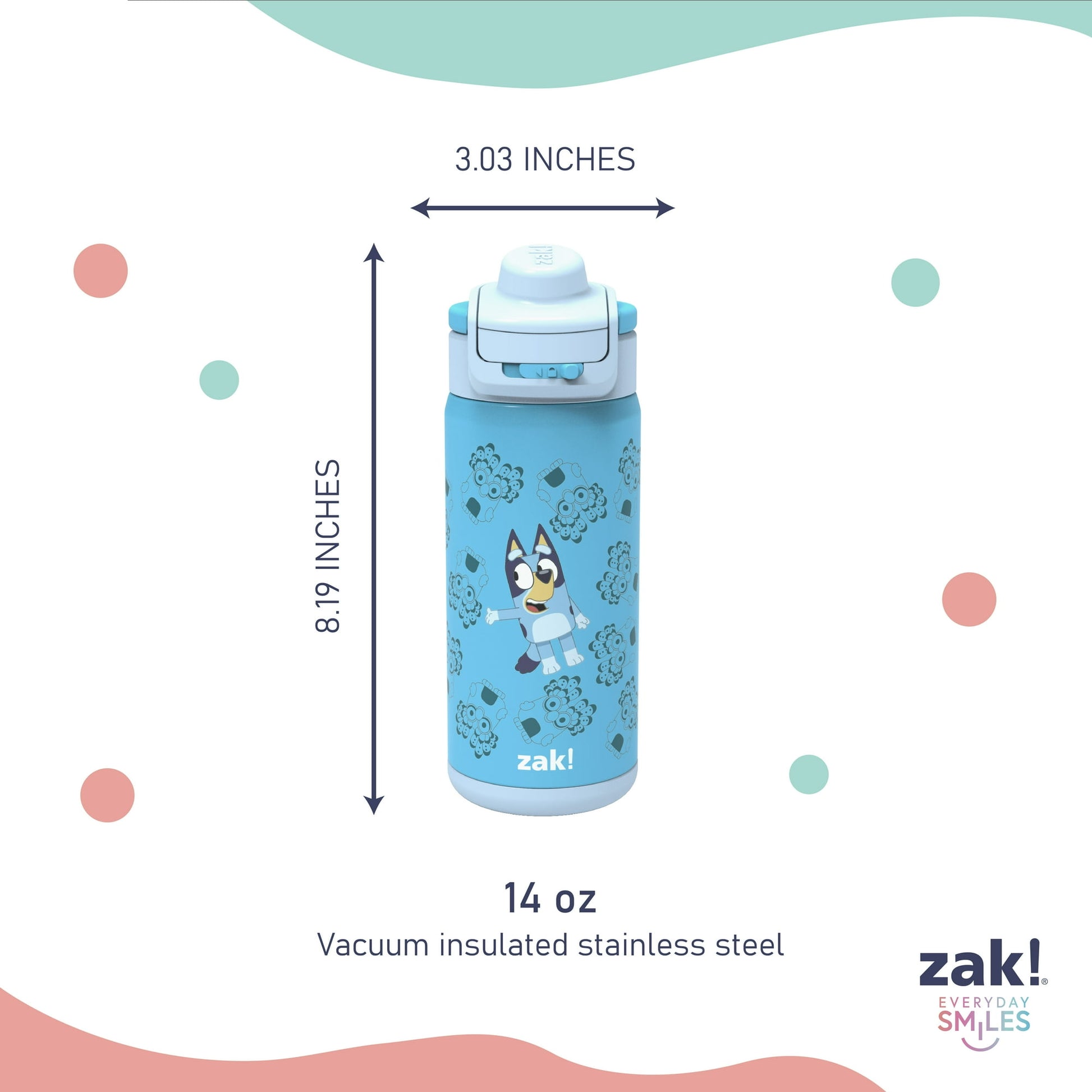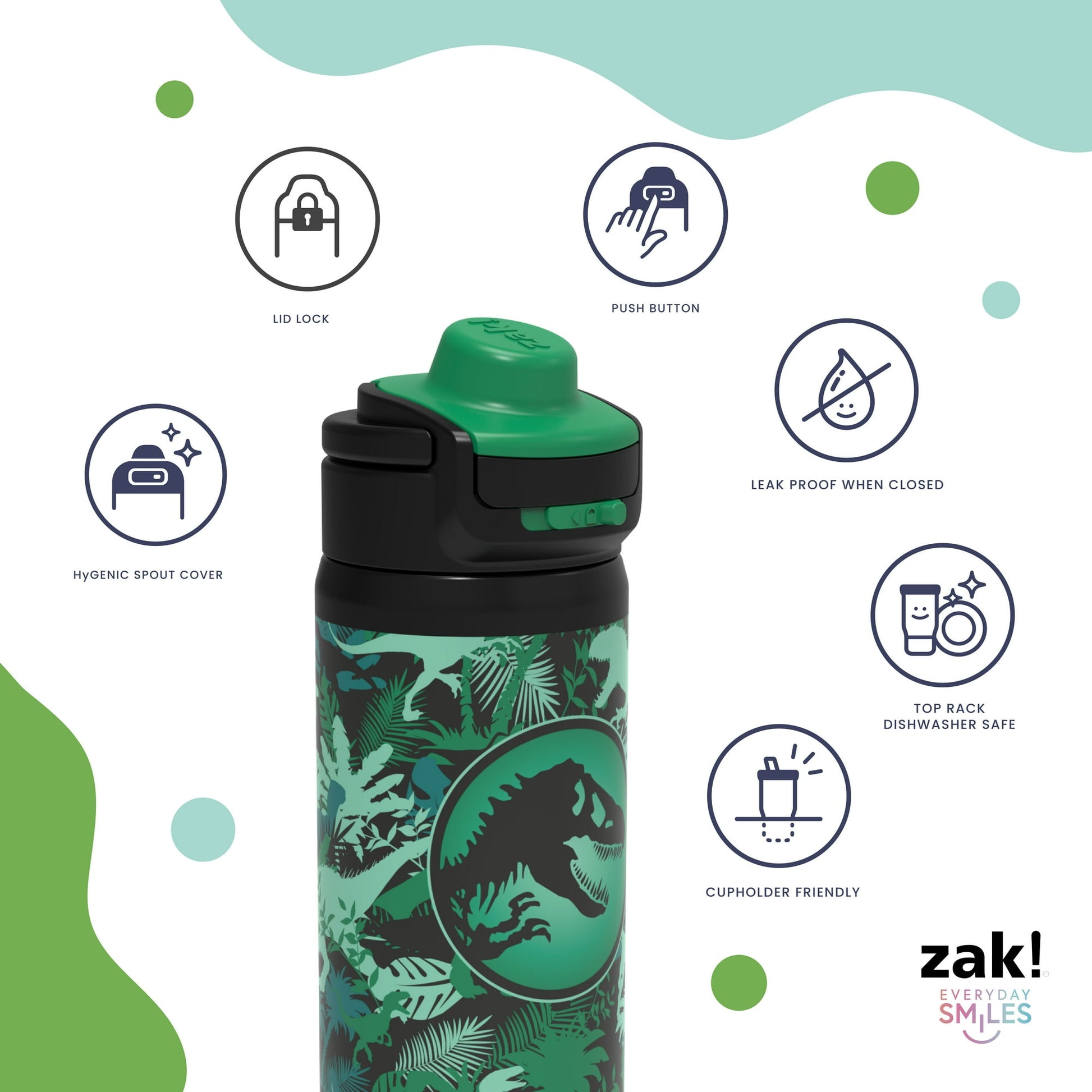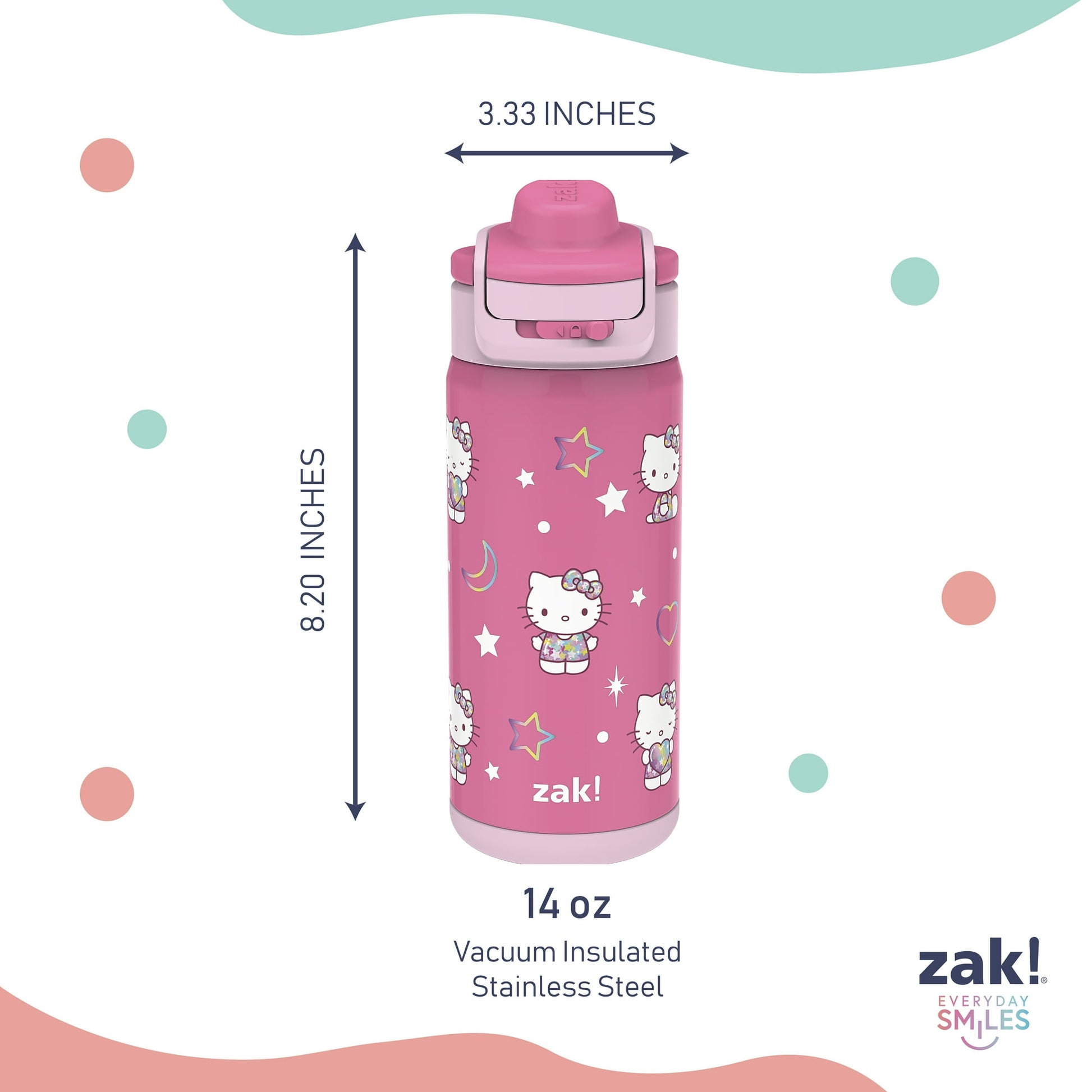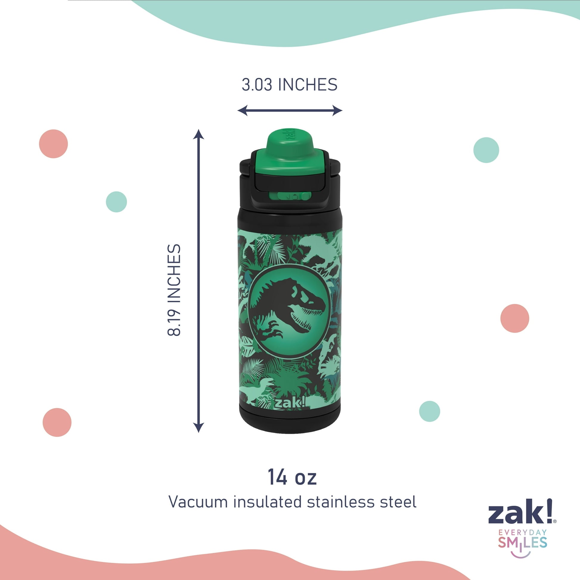 Zak Designs Kids Straw Water Bottle, Stainless Steel Vacuum Insulated Lincoln Bottle with Easy-Open Locking Spout Cover for Travel, Built in Carry Handle