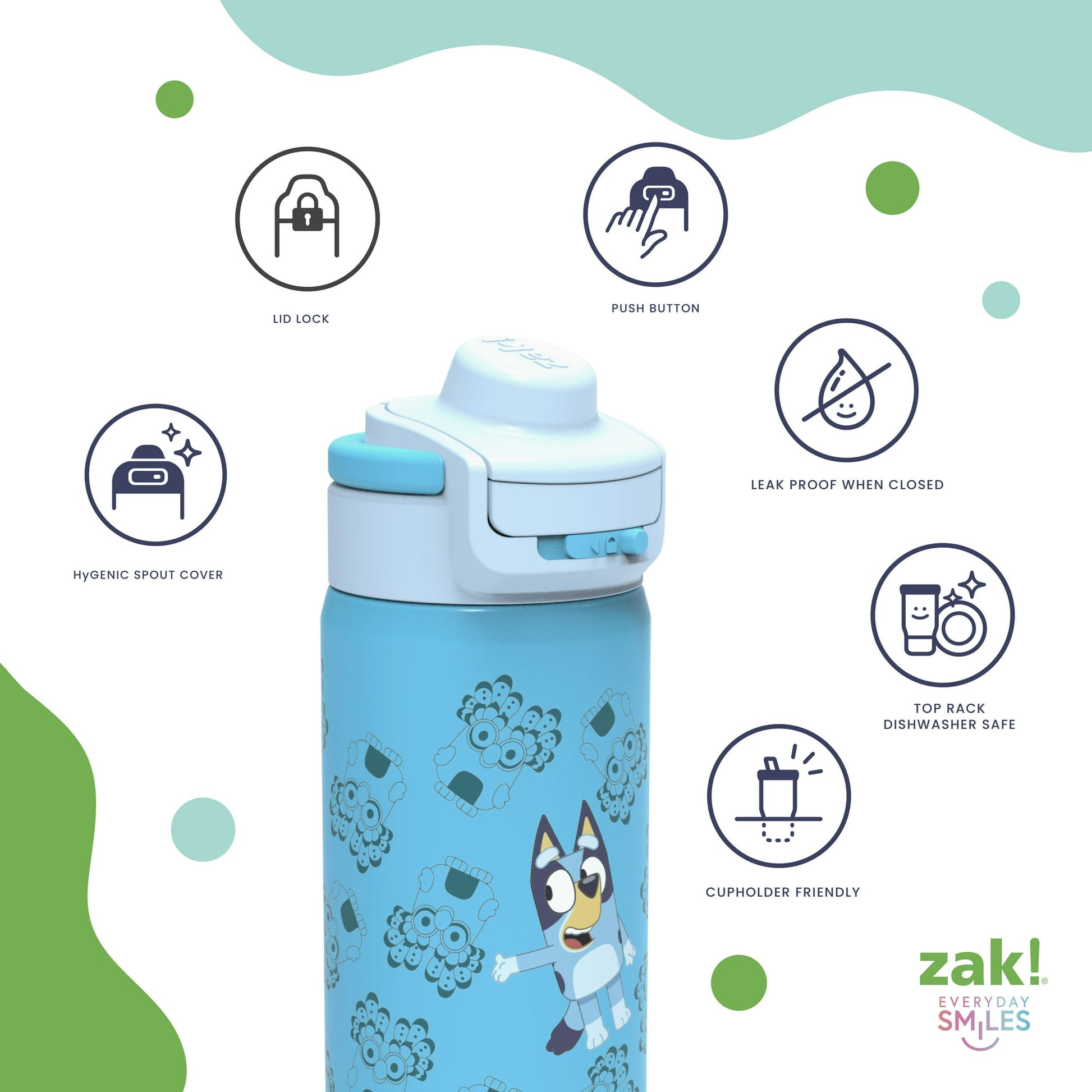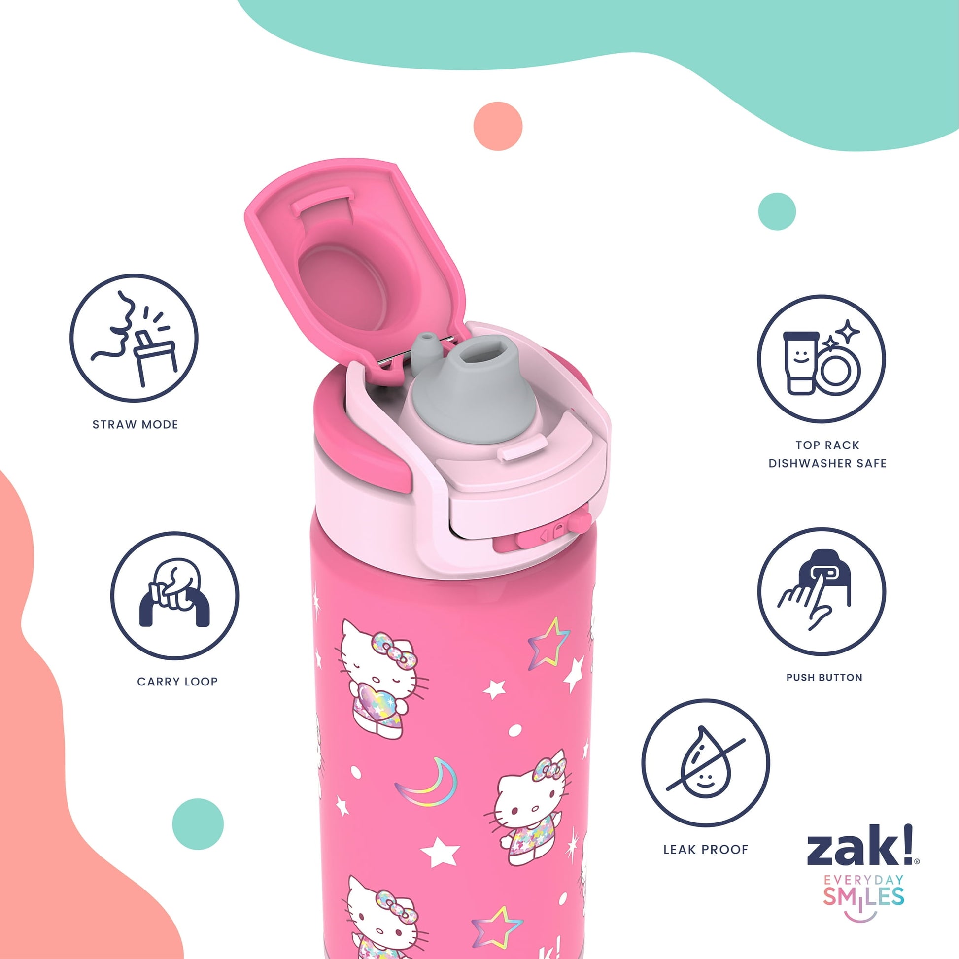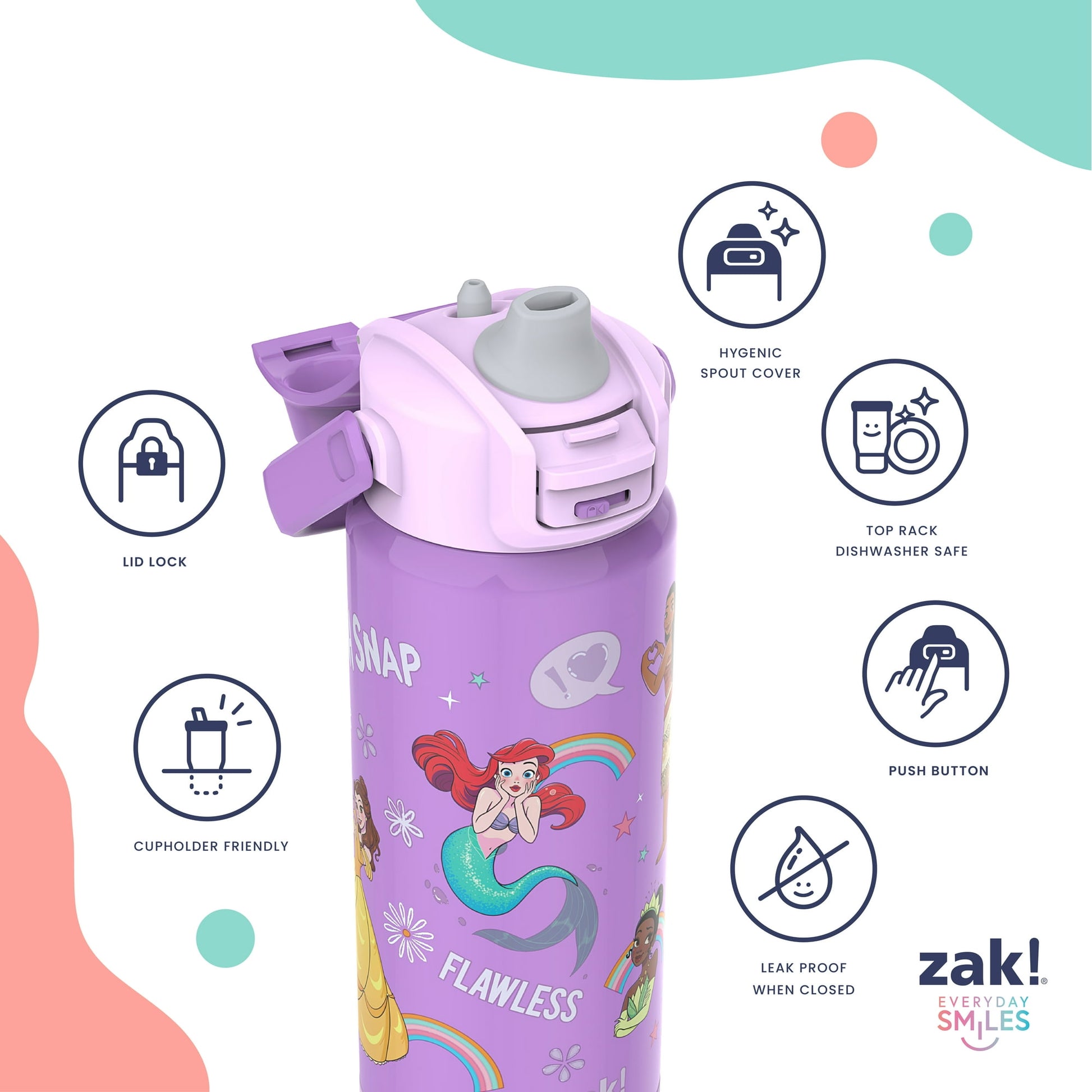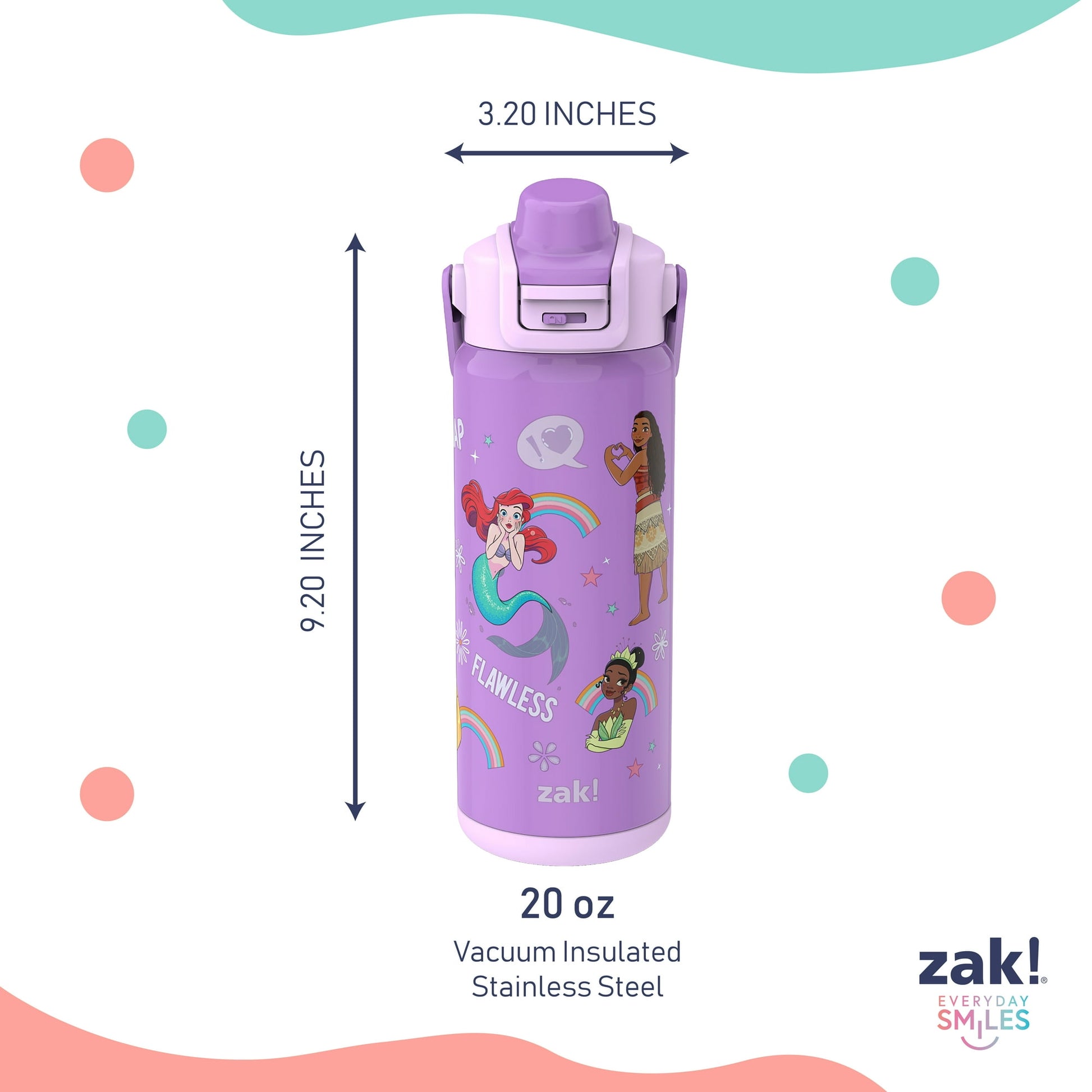 Zak Designs Kids Straw Water Bottle, Stainless Steel Vacuum Insulated Lincoln Bottle with Easy-Open Locking Spout Cover for Travel, Built in Carry Handle