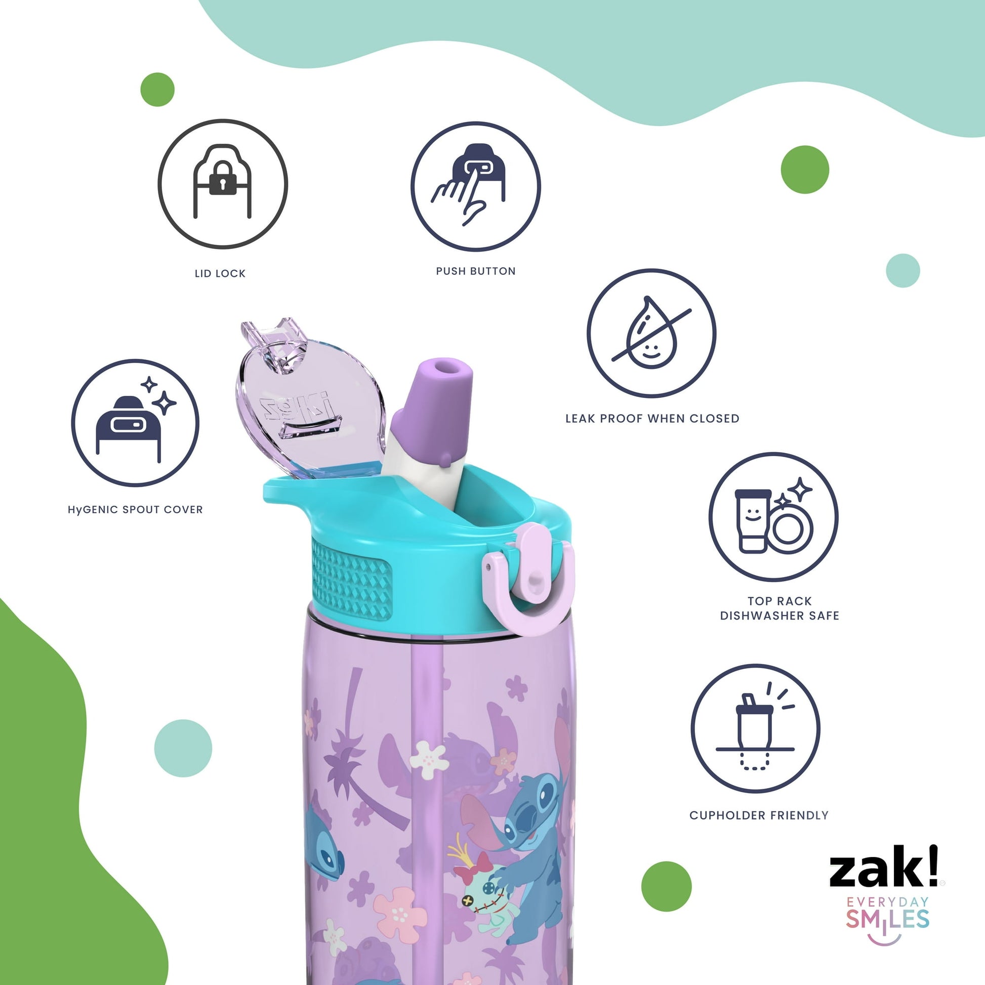 Zak Designs 25oz Durable Plastic Park Water Bottle with Straw, Easy Open Locking Spout Cover for Travel, and Built In Carry Handle